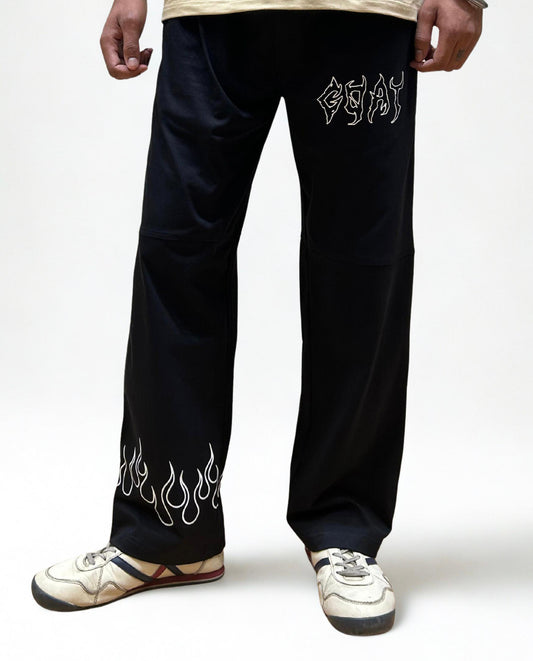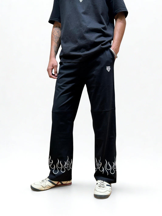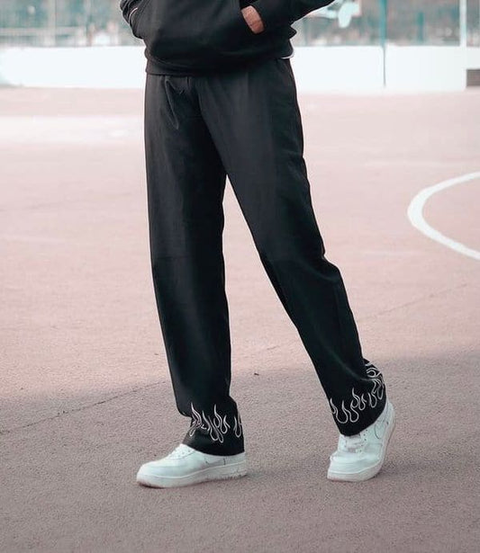 Balanced and fire on both sides—these joggers bring symmetry and heat. Featuring white flame graphics...