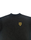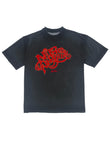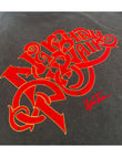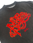 Pulled straight from Sikh philosophy and dropped into a graffiti-style visual by a tattoo artist friend of ours. This tee carries “Nirbhao Nirvair” — meaning fearless, and free from hate — in red velvet rraised print, outlined with matte gold for a regal contrast. The vintage charcoal wash and distressing around the neck, sleeves, and hem give it that worn-in, lived-through-the-fire feel.
