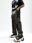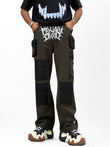 Utility meets chaos. Multi-pocket Phantom Olive lower with gothic front print + ripstop panelling. For the streets or the wild